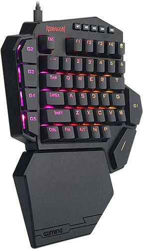 - FELiCON K5: Este teclado para juegos con una sola mano está diseñado con ergonomía, reposamuñecas de teclado grande y desmontable, reduce la fatiga de la mano, teclado para aumentar el diseño antideslizante.